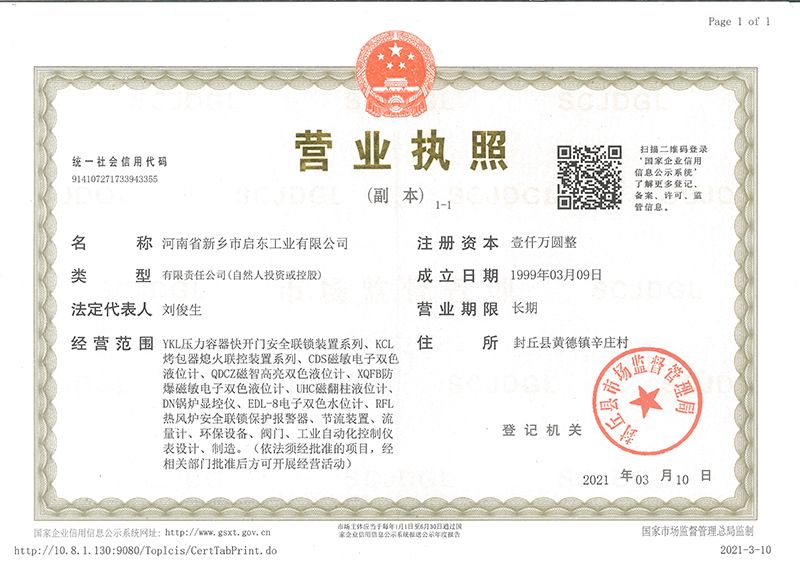 河南省新鄉市啟東工業有限公司始建于1987年,是專注研發、生產自動化儀器儀表(主要與壓力容器、鍋爐等容器配套使用)的廠家。主要產品有液位計(磁敏雙色型、磁翻柱型等)系列、烤包器熄火聯控裝置系列、壓力容器快開門安全聯鎖保護裝置系列、鍋爐報警器系列。二十多年來,公司產品暢銷國內并遠銷俄羅斯、蒙古與東南亞,深得廣大用戶的信賴和好評。我們多年來致力于自動化儀器儀表的研制生產,公司現具有完善的生產、試驗、檢測手段和設備??萍紕撔隆⒄\信服務,是我們不變的經營理念,我們將以強有力的技術支持及售后竭誠為客戶提供良好的服務?! ?012年我公司成功研發了KCL系列烤包器熄火聯控裝置,并于2013年2月2日榮獲中華人民共和國國家知識產權局辦法的《實用新型**證書》<**號:2021202257735>該產品廣泛應用于唐鋼等大型鋼鐵企業,為烤包器安全作業提供了有力的保障?! ?002年我公司成功研發磁敏電子雙色液位計獨特的高亮度LED紅綠雙色顯示,獲得了專家的首肯和用戶的一致好評。在此基礎上我公司研發人員十年磨一劍,致力于XQFB-1防爆型磁敏雙色液位計的研發,于2013年12月27日由國家防爆電器產品質量監督檢驗中心檢驗合格并頒發防爆合格證書<編號:cnex19.0883>。該產品性能得到了充分的發揮,廣泛應用于含有Ⅱ類A·B級T1-T4組可燃氣體或蒸汽與空氣混合形成的爆炸性混合物的0區、1區危險場所。連接用戶DCS或PLC系統實現遠距離集中顯示和控制,從而實現節能、數字化管理。為用戶增加了一定的經濟效益和社會效益,。2014年公司成功申請了夢潤儀表的logo,新的品牌新的形象,夢潤儀表是啟東的LOGO, 歡迎新老用戶前來洽談合作。  我們一如既往地注重科研的投入,憑借產品的不斷更新、加大科技含量,進一步拓展市場。我們相信品質成就未來,以過硬質量、優惠價格、完善的售后服務熱忱歡迎廣大客戶來我司視察指導、洽談業務;精誠合作,共創輝煌!